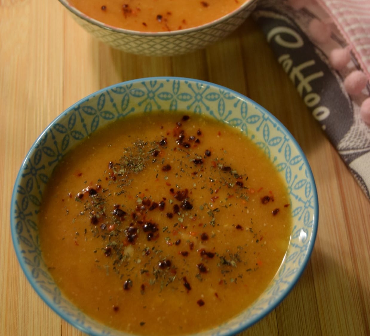- Bir tavaya bir yemek kaşığı zeytinyağı, kırmızı pul biber, kuru nane ekleyip kızdırın ve çorbanın üzerine dökün. Dilerseniz pul biber ve naneyi yağda kavurmadan da kullanabilirsiniz.