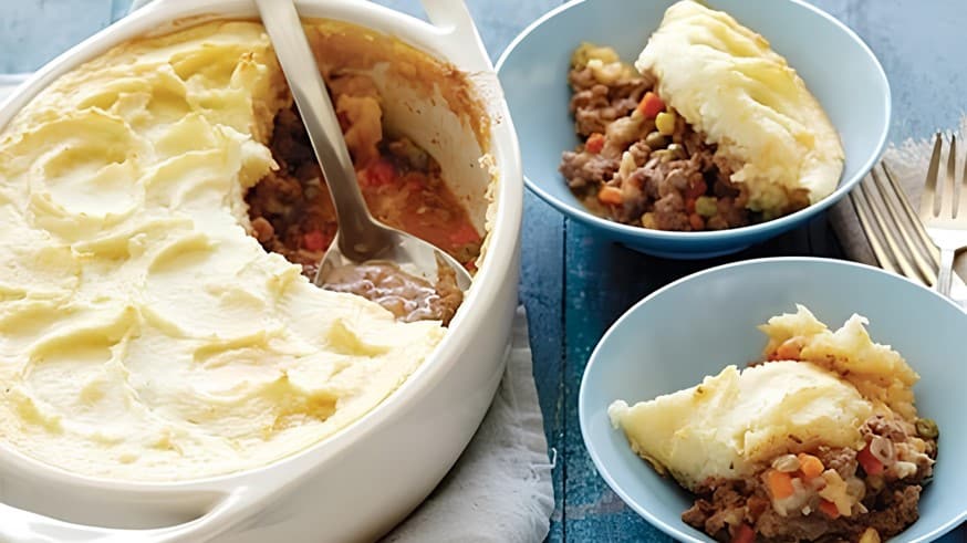 Shepherd’s Pie, yanında ev yapımı yoğurttan yapılmış cacıkla mükemmel bir öğün olur.